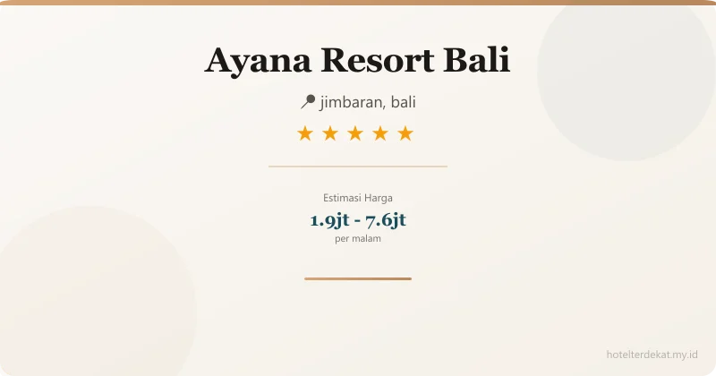 AYANA Resort and Spa Bali adalah resort mega di tebing Jimbaran yang terkenal dengan Rock Bar, bar paling ikonik di Bali yang dibangun di atas karang. Dengan area 90 hektar dan 12 kolam renang, AYANA adalah destinasi tersendiri.