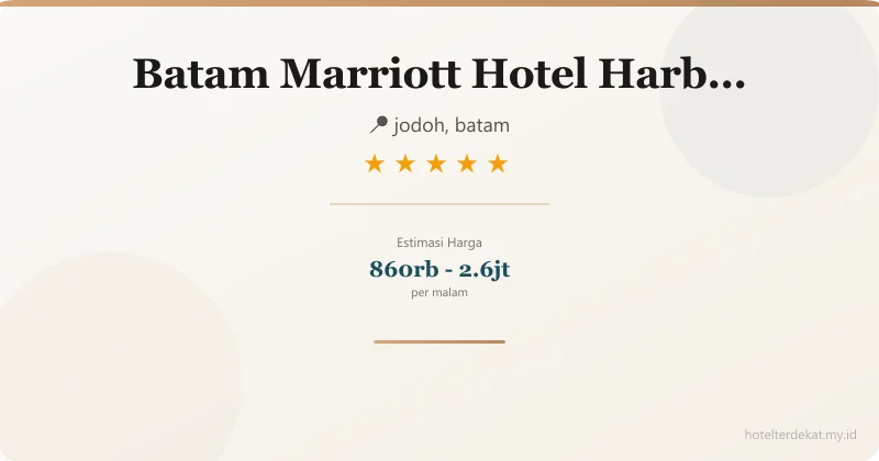 Batam Marriott Hotel Harbour Bay menetapkan standar baru kemewahan di Batam. Sebagai satu-satunya hotel bintang 5 brand internasional di area Harbour Bay, hotel ini menawarkan kenyamanan tanpa tanding bagi pelancong lintas negara.