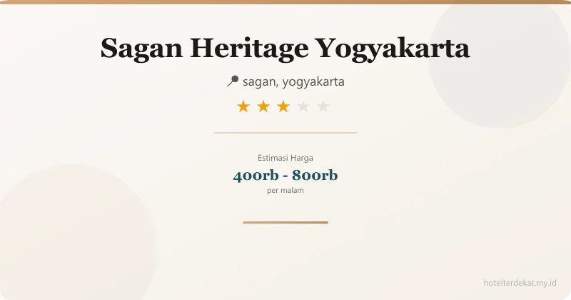 Sagan Heritage Hotel adalah boutique hotel unik di bangunan kolonial bersejarah! Ini bukan hotel biasa - kamu literally tidur di living history. Arsitekturnya asli dari era kolonial, direstorasi dengan cantik, dan sekarang jadi hotel boutique yang instagramable!