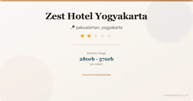Zest Hotel Yogyakarta adalah pilihan cerdas bagi backpacker atau keluarga kecil yang ingin menghemat biaya akomodasi namun tetap mendapatkan standar kenyamanan internasional. Dikelola Swiss-Belhotel International, kebersihan dan pelayanannya terjamin.